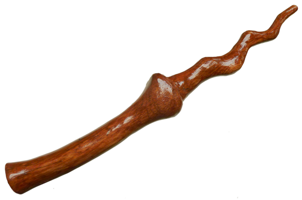 The process begins with selecting a branch because of its unique characteristics, then cutting it to a desired length, stripping the bark off, carving the piece into a wand configuration that best works with the wood, sanding, staining, and seal coating to protect the wand and its finish. Many different tools are used. The entire process of making one wand takes many hours of painstaking but enjoyable effort. Seeing a tree branch wood transform into a completed wand is inspiring. I prefer to craft my wands from hand selected tree branch wood because each branch is unique in regards to shape, grain pattern, knots, burls and especially when age introduces blemishes, twists, and includes surprises that are exposed as the wood is being carved. The wood I use is typically, Walnut, Oak, Maple, Hawthorn, and Willow.The process begins with selecting a branch because of its unique characteristics, then cutting it to a desired length, stripping the bark off, carving the piece into a wand configuration that best works with the wood, sanding, staining, and seal coating to protect the wand and its finish. Many different tools are used. The entire process of making one wand takes many hours of painstaking but enjoyable effort. Seeing a tree branch wood transform into a completed wand is inspiring. |