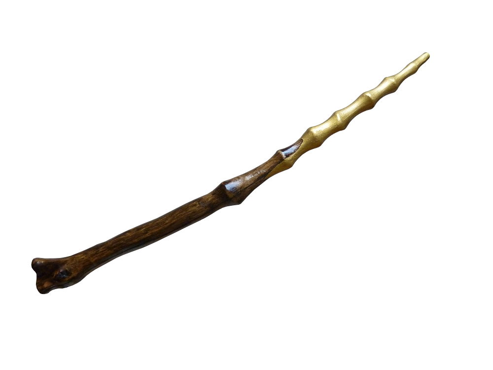 I prefer to craft my wands from hand selected tree branch wood because each branch is unique in regards to shape, grain pattern, knots, burls and especially when age introduces blemishes, twists, and includes surprises that are exposed as the wood is being carved. The wood I use is typically, Walnut, Oak, Maple, Hawthorn, and Willow.